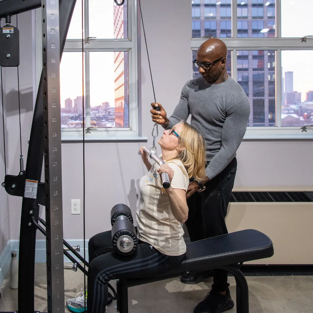 Our one-on-one training offers a fully customized, concierge-style fitness experience. Every session is thoughtfully designed around your body, goals, and lifestyle, with expert coaching and precise attention to detail. In our private, 9th-floor studio, you will work through a personalized training plan built from a comprehensive movement assessment. This distraction-free environment allows you to train with confidence and purpose while focusing on progressive results and functional strength.